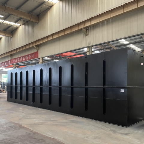 这是我们公司加工的MBR膜一体化污水处理设备,处理的是生活污水,所用的工艺为缺氧、好氧、MBR膜、污泥池、紫外线消du和PLC控制。