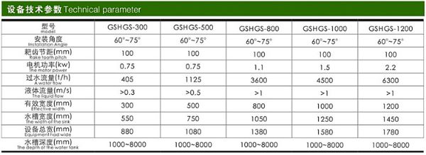 该设备由一种独特的耙齿结构组装成回转格栅链,在电机的驱动下,格栅链与水流方向成逆向回转运动。原水流经格栅时,各类固体杂质被截留在筛网上,在电机和减速器驱动下,耙齿链下行,呈张开趋势;当耙齿链达到渠底,在导向轮的作用下,耙齿链将栅渣耙入;当耙齿链运转到设备的上部时,所载杂质依靠自身重力从耙齿上剥落,而粘在耙齿上的杂质会被清扫器不断清除,并滑入容器或传输带。在完成排渣后,在导向轮作用下,耙齿链下行,进入下一个工作循环。