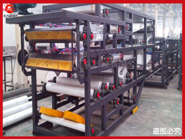 洗沙泥浆分离机是通过两条滤带缠绕在一系列顺序排列、大小不等的辊轮上,利用滤带间的挤压和剪切作用,来脱除料浆中水分的一种压滤设备,具有着能连续作业、自动化程度高、节能、使用维护方便等优点,是一种进行污泥脱水减量化处理的理想设备。