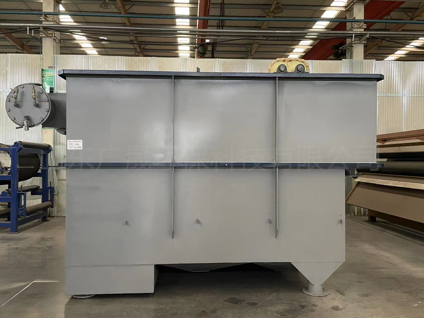 1、在成份复杂的高难度废水处理的工艺组合时,气浮处理同时还伴附着曝气现象,降低了表面活性和有机浓度,使耗氧量大为降低,促进了废水的进一步净化,为下级处理提供了有利于达标的水质。气浮机气浮系统集进水、絮凝、分离、集水、出水于一体,与传统气浮设备类似,设有一个稳流室、溶气释放室,使处理性能更稳定,效果更优越。稳定室:通过折板反应的原水,流速很高,若直接与溶气水接触,会消散微小气泡,影响气泡沾附絮块效果,从而降低气浮处理效率,若增加了稳流室,使湍流的原水动能消耗,匀速进入溶气水释放室,从而有力保证了去除效果。溶气气浮机溶气释放室:溶气释放室与分离室于一个槽体。中间隔开,溶气水与絮凝完毕的原水在此粘附,缓慢上升,进入气浮分离室,保证了絮凝块与微小气泡的接触空间与时间,使溶气水的释放率达80-100%。
