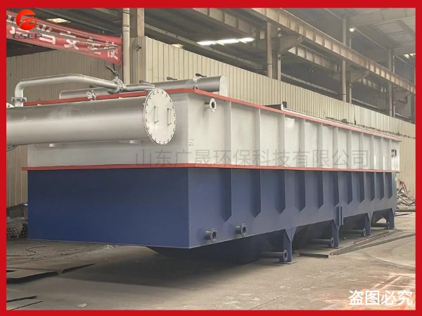 1、在成份复杂的高难度废水处理的工艺组合时,气浮处理同时还伴附着曝气现象,降低了表面活性和有机浓度,使耗氧量大为降低,促进了废水的进一步净化,为下级处理提供了有利于达标的水质。气浮机气浮系统集进水、絮凝、分离、集水、出水于一体,与传统气浮设备类似,设有一个稳流室、溶气释放室,使处理性能更稳定,效果更优越。稳定室:通过折板反应的原水,流速很高,若直接与溶气水接触,会消散微小气泡,影响气泡沾附絮块效果,从而降低气浮处理效率,若增加了稳流室,使湍流的原水动能消耗,匀速进入溶气水释放室,从而有力保证了去除效果。溶气气浮机溶气释放室:溶气释放室与分离室于一个槽体。中间隔开,溶气水与絮凝完毕的原水在此粘附,缓慢上升,进入气浮分离室,保证了絮凝块与微小气泡的接触空间与时间,使溶气水的释放率达80-100%。