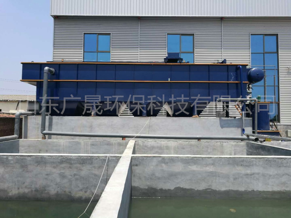来自屠宰场的污水经格栅(网)去除污水中的毛、皮、浮渣和大颗粒悬浮物后自流入隔油池,去除大部分油脂和泥砂后进入调节池,经调节池调节水质水量后,并保证后续处理设施的正常运行。经过调节池的水经泵提升至平流式气浮沉淀一体机。先期去除水中悬浮物(ss),去除率达90%以上,出水进入一体化污水处理设备,一体化污水处理设备由(水解酸化池、二级接触氧化池、沉淀池组成),污水在水解酸化池