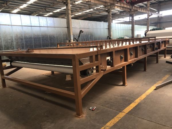 污泥脱水压滤机通过两条滤带缠绕在一系列顺序排列、大小不等的辊轮上,利用滤带间的挤压和剪切作用,来脱除料浆中水分的一种压滤设备,具有连续作业、自动化程度高、节能、使用维护方便等优点。