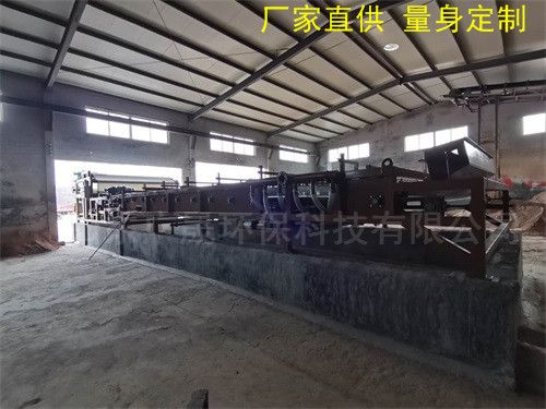 泥浆处理装置是通过两条滤带缠绕在一系列顺序排列、大小不等的辊轮上,利用滤带间的挤压和剪切作用,来脱除料浆中水分的一种压滤设备,具有着能连续作业、自动化程度高、节能、使用维护方便等优点,是一种进行污泥脱水减量化处理的理想设备。