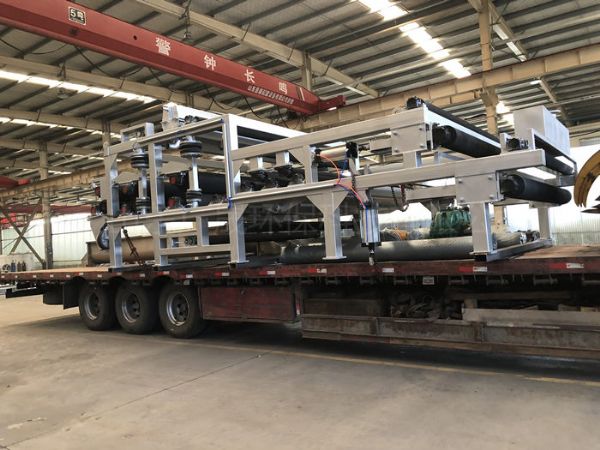 淤泥压滤机脱水过程可分为预处理、重力脱水、楔形区预压脱水及压榨脱水四个重要阶段。该设备主要由驱动装置、传动滚筒、输送带、槽型上托辊、下托辊、机架、清扫器、拉紧装置、改向滚筒、导料槽、重锤张紧装置及电器控制装置等组成。