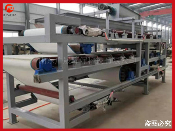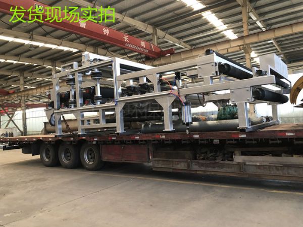 工地泥浆压滤机脱水过程可分为预处理、重力脱水、楔形区预压脱水及压榨脱水四个重要阶段。该设备主要由驱动装置、传动滚筒、输送带、槽型上托辊、下托辊、机架、清扫器、拉紧装置、改向滚筒、导料槽、重锤张紧装置及电器控制装置等组成。