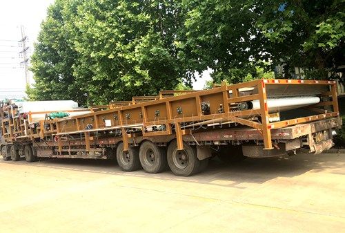 在重力的作用下自由水透过滤网背面而渗出分离,形成不流动状态的泥浆,达到压榨脱水区实施较大压力条件,然后随着网带的移动而夹持在上下两条网带之间,经过具有可调张紧力的过滤带及直径逐渐递减的转辊和对压辊,实施连续增加的缓慢的对辊挤压力、剪切力作用。