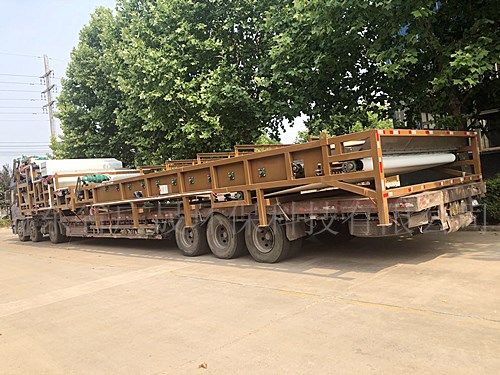 4.对夹挤压辊(或带)高压脱水区,污泥脱离中压区后就进入高压区,污泥在此区内受到1~3组对夹辊(或带)挤压,经过挤压后体积大幅收缩,污泥内的间隙游离水被充分挤出,此时,形成含固率较高的滤饼,分体式浓缩带式污泥脱水机特别适用大型矿山尾泥、大型洗砂场,石场制砂泥浆脱水、陶瓷原料泥浆、洗山砂、土包沙泥浆脱水、河道清淤等工业污泥深度脱水处理和大型污水厂的使用。
