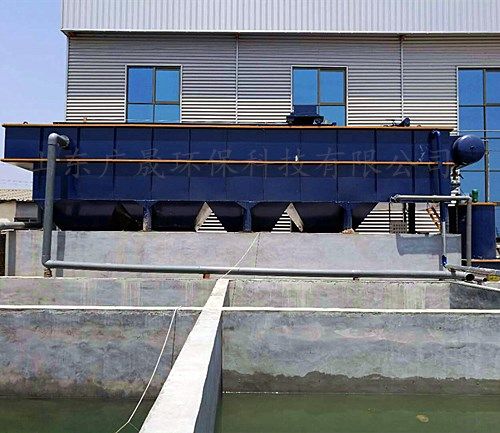 溶气罐产生溶气水,溶气水通过释故器减压释放到待处理的水中. 溶解在水中的空气从水中释放出来,形成20 -40um的微小细泡,微气泡同污水中的悬浮物结合.使悬浮物比重小于水,并逐渐浮到水面形成浮渣.水面上备有刮板系统,将浮渣刮入污泥池,清水从下部经溢流槽进入清水池.