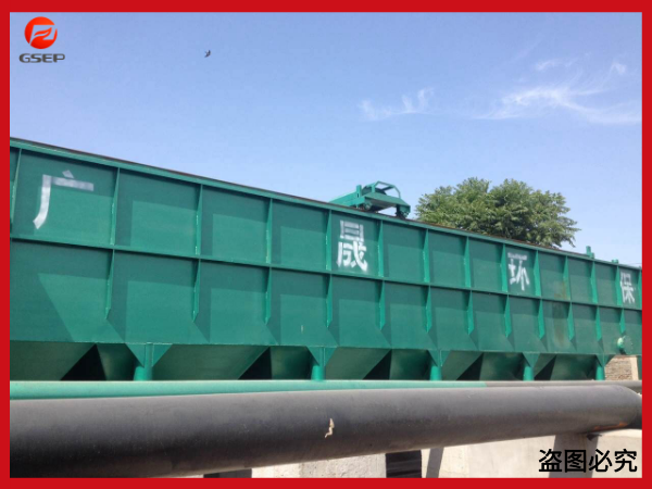 2.然后由泵把污水提升到斜管沉淀池,污水中密度大于1或接近于1的杂质经过加药絮凝在斜管沉淀池中会快速充分沉淀;沉淀下来的杂质定期排至污泥,清水经溢流堰板流至气浮机.增加斜管沉淀池的目的是减轻后续工艺设备的运行负荷,增加了后续工艺中设备的运行效率和去除率,让出水水质更加清澈.